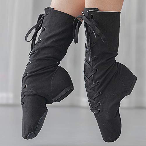 JUODVMP Scarpe da Ballo Jazz in Tela per Donna Bambini Suola Split Suede Sole Allacciare Scarpe Danza Moderna,Modello TJJCGBFBJS,Nero,38 EU