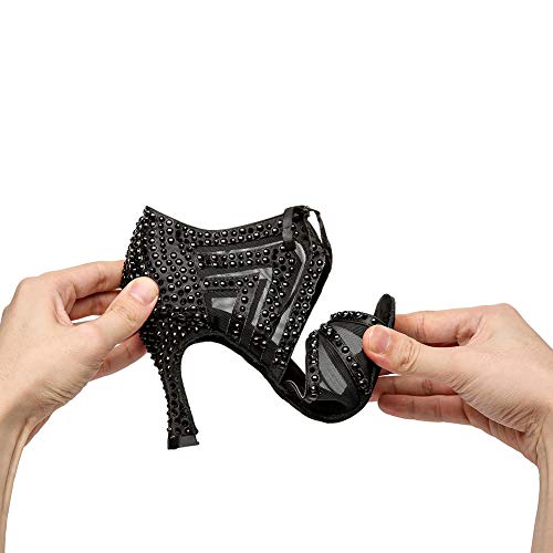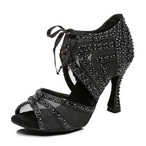JUODVMP Scarpe da Ballo Latino Salsa con Strass Donna Performance Feste Matrimoni Balli Latini Danza Pratica Peep Toe Scarpe,Modello YCL435,Nero+Hz-8.5CM+JB Heel-40 EU