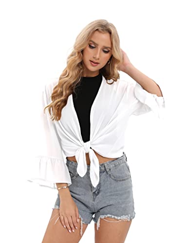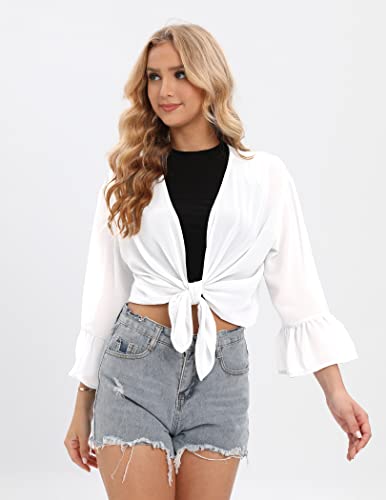 JUOIANTANG Donne Chiffon Coprispalle con Volant Maniche Aperto Front Cover-Ups Solid Color Chiffon Bolero Jacket S-XL, bianco, L