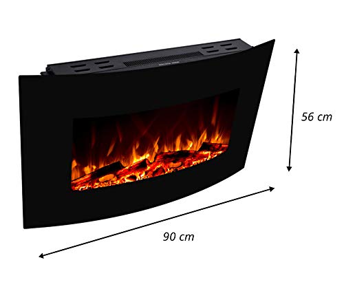 GLOW FIRE Jupiter Curved Camino elettrico, 90 cm di larghezza, camino da pavimento e da parete con LED | fuoco artificiale senza riscaldamento | telecomando, dimmer, nero