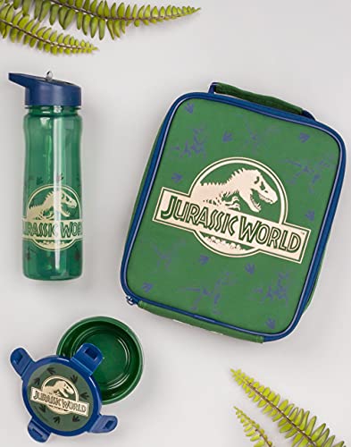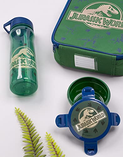 Borsa da pranzo isolata mondo giurassico, bottiglia d'acqua e snack pot set - perfetto per i fan del film di dinosauro epico, mondo giurassico;