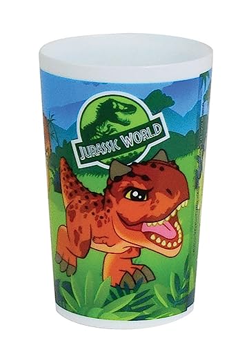 JURASSIC WORLD - Set di contenitori per bambini, con bicchiere, 220 ml, 16 cm, 22 cm, posate H.13,5 cm, GOURDA 350 ml e SCATOLA GOUTER