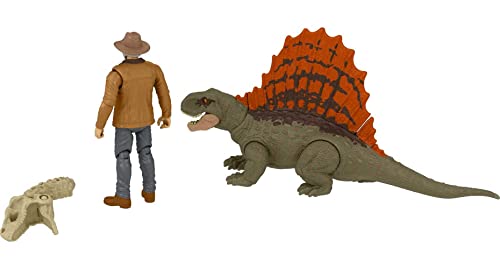 Jurassic World Dominion Dr Alan Grant & Dimetrodon Human and Dino Pack con 2 action figures, set regalo giocattolo e collezione