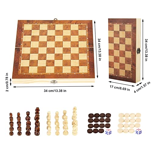 JurciCat Scacchi in legno Scacchiera portatile pieghevole professionale legno 3 in 1 Chess Board Set per attività di famiglia Festa Adulti Bambini Viaggio