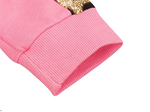 Jurebecia Bambina Completi 2 Pezzi Pullover Maniche Lunghe Top Pantaloni Lunghi Set di Leopardato Outfit Completo Neonata Rosa 3-4 Anni