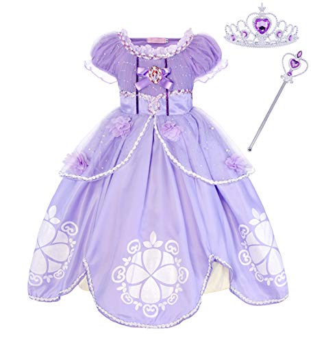 Jurebecia Costume da Principessa per Ragazze Abiti da festa per bambini Sofia Outfit attrezzatura Childs Abito cosplay di compleanno di Halloween