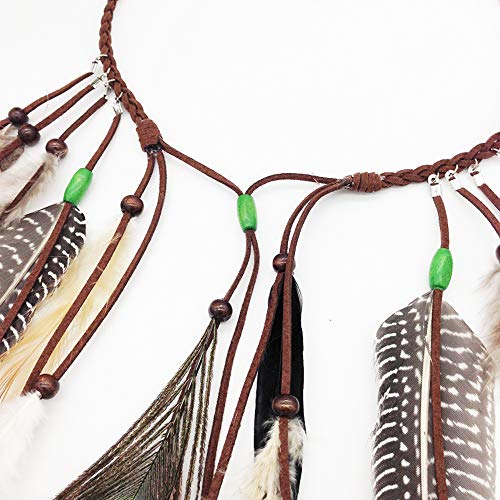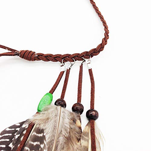 Lunghezza regolabile: lunghezza della corda intrecciata: ca. 18.5inch. Le piume variano in lunghezza: ca. 7.1-7.7inch. La perla può essere regolabile per adattarsi alla circonferenza della testa.