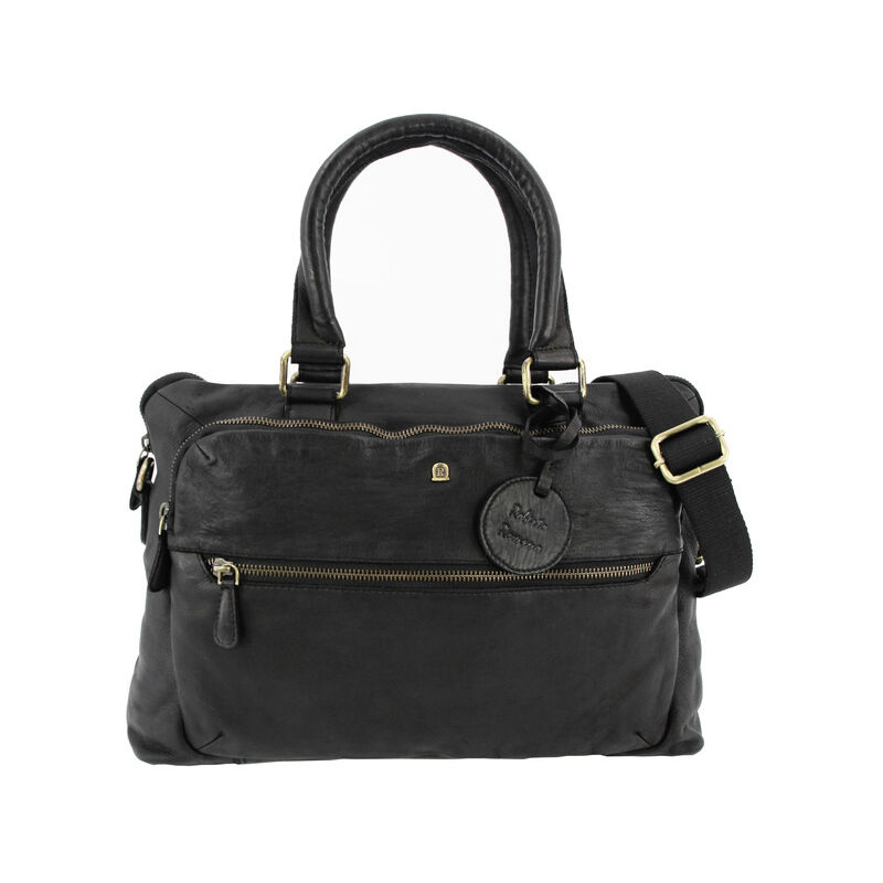 La borsa da donna SORRENTO di Roberto Romano è una delle preferite fatta a mano in pregiata pelle lavata nera e fa sempre bella figura al lavoro, durante le riunioni o nel tempo libero. La vera pelle viene conciata a mano, lavata e tinta in un processo approfondito per ottenere la massima qualità e morbidezza possibili. L'interno della borsa ha una fodera in cotone nero. Lo scomparto principale ha una sezione organizzativa con due piccole tasche, una tasca con cerniera e uno scomparto imbottito per laptop. Nella parte anteriore della borsa c'è un secondo scomparto principale per documenti e documenti e una tasca più piccola con cerniera per accessori, occhiali o altri piccoli oggetti. C'è una tasca extra large con cerniera sul retro. Le due robuste maniglie e la tracolla regolabile offrono un elevato comfort di trasporto. Borsa da lavoro da donna di alta qualità realizzata con lavorazione artigianale classica e molto lavoro manuale. Dimensioni esterne: ca. 24 x 38 x 8 cm. Dimensioni