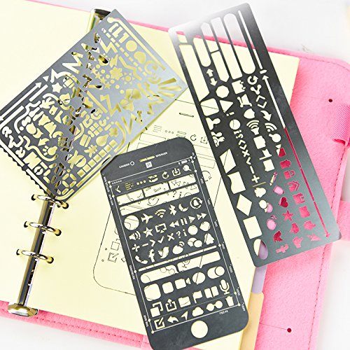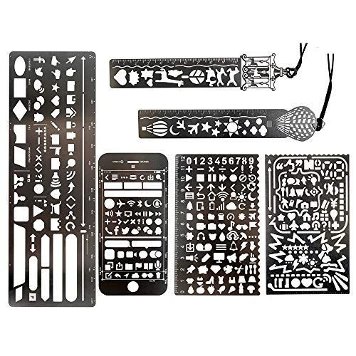 JUSLIN Pacchetto di 6 stampini da disegno in acciaio inossidabile, pittura scala portabile sagoma grafica per album