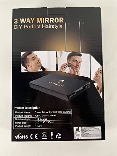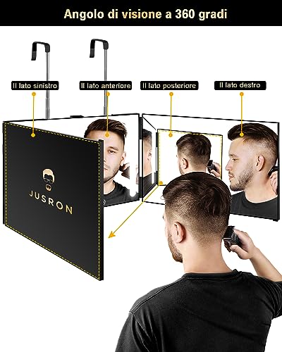JUSRON Specchio Trucco a 3 Vie, Portatile Specchio a 360 Gradi Capelli, Specchio Makeup a 3 facce Regolabile in Altezza con Gancio Telescopico, Regalo Compleanno Ideale per Donne/Uomini(senza LED)