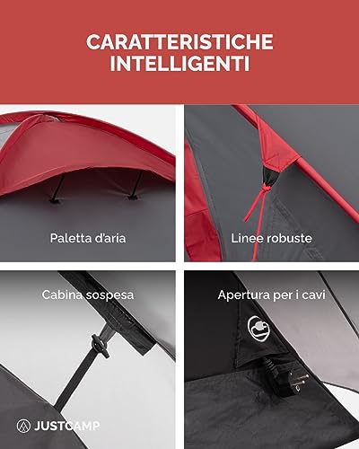 Justcamp Scott tenda campeggio 4 posti, tenda igloo con anticamera, cabina notte - grigio