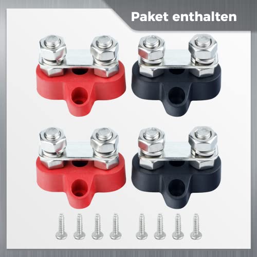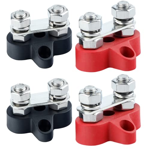 JUSTDOLIFE 4 pezzi Bus Bar Terminal Block, 4 pezzi Bus Bar Terminal Block, Power Distribution Block Battery M8 Dual Terminal Studs 516 Marine Bus Bar 12 V 24 V 48 V per Auto Marine Barca, Rosso e