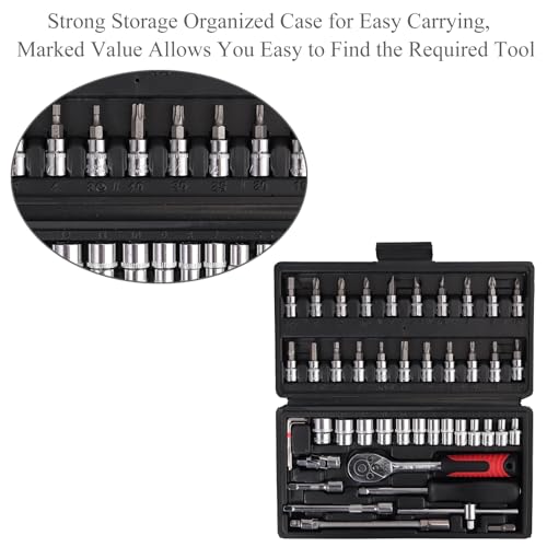 Justech 46pz Set di Chiavi a Bussola Realizzato in Acciaio al Cromo Vanadio Set Chiavi a Tubo 1/4" Set da 46 Chiavi a Bussola