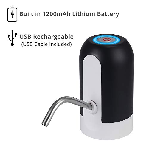 Justech Dispenser di Acqua,USB Ricarica Automatica Pompa per Acqua Portatile elettrica Rimovibile, Adatta all'Uso in Acqua imbottigliata+5 x Copri bottiglia-Nero