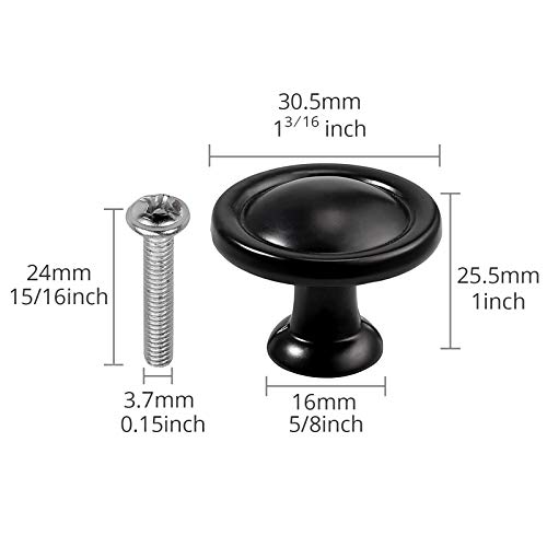 Justech 25 Pezzi Pomelli Rotondi per Porta Nero Pomelli per Porta Manopole per Mobili per Cassetti/Cucina/Credenze/Armadio