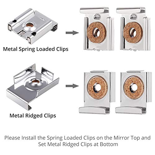 【Facile da Installare】 Installare prima una coppia di staffe di fissaggio uniformemente sul fondo, quindi posizionare il riflettore sulla staffa per contrassegnare la posizione della clip a molla, quindi rimuovere il riflettore, forare e fissare la coppia superiore. La clip a molla semplifica l'installazione dello specchio.