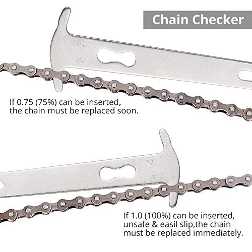 【Ispettore Catena】Questo strumento di ispezione della catena è progettato per misurare le condizioni della catena e indicare il grado di usura: 0,75 (75%) e 1,0 (100%) sono punti da sostituire.