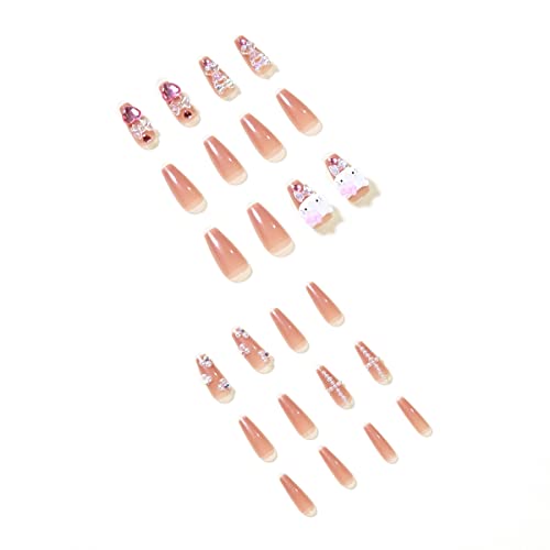 JUSTOTRY 24 pezzi Press on Nails Lunghi, graziose unghie artificiali con motivi di stampa animale, per unghie finte da incollare con colla per unghie, ballerina finte unghie da donna
