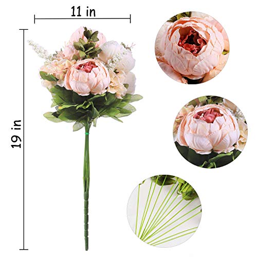 Justoyou - Bouquet di fiori finti con peonie, ideale per matrimoni, decorare casa, tavolo, cucina, ufficio, giardino, interni ed esterni rosa chiaro