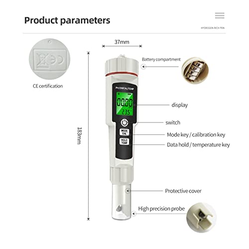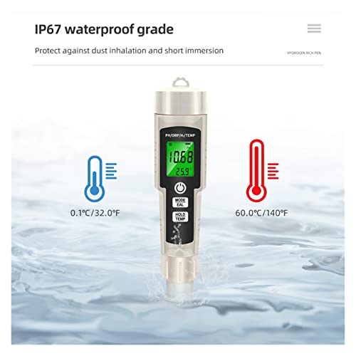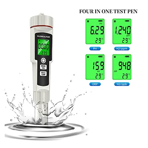 4 in 1 Rilevamento della qualità dell'acqua: PH Meter adotta 4 in 1 Design funzione, che può misurare PH, ORP, H2 e temperatura ad alta precisione. Misurazione a tutto tondo della qualità dell'acqua per garantire una buona qualità dell'acqua.
