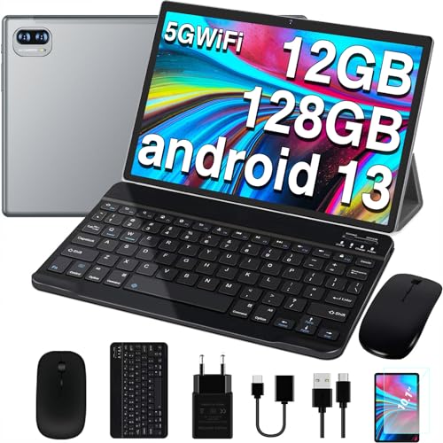 JUSYEA Tablet 10 Pollici Android 13 Tablets PC 12GB RAM + 128GB ROM (1TB TF) Cores 2.0Ghz, WiFi 5G+2.4G, Batteria 8000mAh, Bluetooth 5.0, GPS, 8MP+5MP, con Custodia, Tastiera e Mouse, Grigio