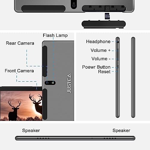 JUSYEA Tablet 10.1 Pollici Android Tablets con Octa-Core 4GB RAM + 64GB ROM, SD/TF 128GB, WiFi, 8000mAh Batteria, FHD IPS, Dual Cameras 5MP + 8MP, con Custodia, Tastiera Bluetooth+Mouse, Grey