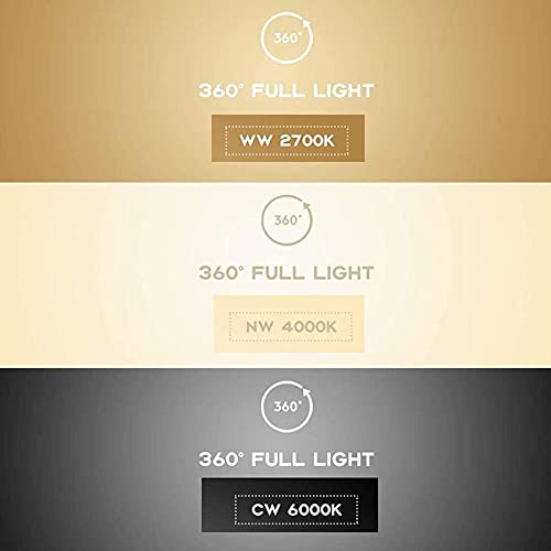 Alta luminosità: copertura in plastica di alta qualità e prese in ceramica mostrano un'elevata trasmissione luminosa.Angolo del fascio di 360 gradi, immediatamente su piena luminosità senza tremolare o ronzare, previene gli occhi degli occhi.