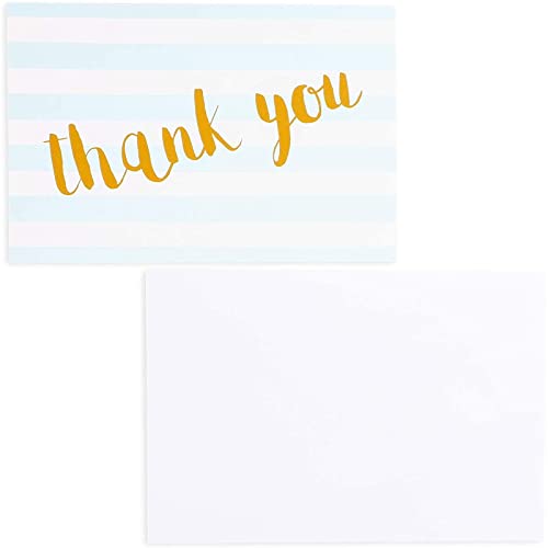 Juvale 12 biglietti di auguri con buste di ringraziamento, oro su strisce blu e bianche, 10 x 15 cm