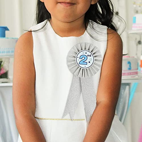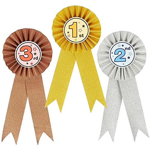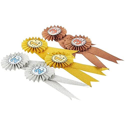 Juvale Confezione da 6 rosette premio da 1 ° a 3 ° posto, nastri di riconoscimento per competizione, sport (oro, argento, bronzo colorato)