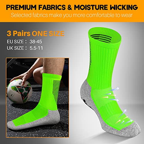 JUYANO 3 Paia Calzini da Calcio Antiscivolo Uomo,Traspirante Elastico Sportivi Anti Vesciche Calze Grip Calcio per Ciclismo Trekking Pallavolo Ciclismo Calze Allenamento Calcio Donna(Verde)