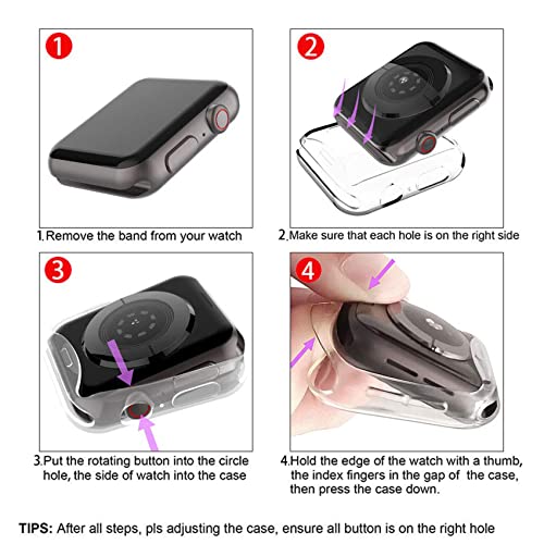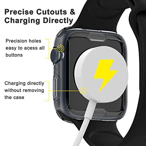 【Protezione Completa】- La custodia è realizzata in flessibile TPU di alta qualità, copre l'intera parte anteriore e i bordi curvi del iWatch, offrendo una protezione completa per il tuo smartwatch da graffi, cadute o urti accidentali.