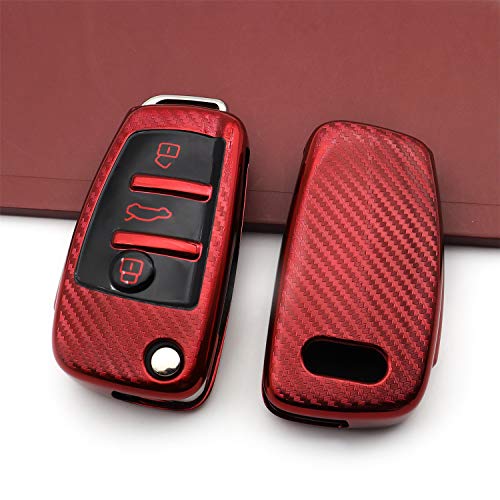 M.JVisun Morbido Fibra di Carbonio Finire Auto Chiave Custodia Per Audi A1 A3 A4 A6 A8 Quattro Q2 Q3 Q7 R8 RS3 RS6 S3 S6 TT TTS Chiave Pieghevole Galvanizzato TPU Cover Con Portachiavi Metallo - Rosso