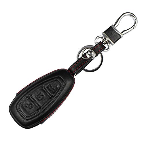 M.JVisun Vera Pelle Chiave Auto Protettiva Custodie Cover per Ford Focus EcoSport KUGA Mondeo iVCT Intelligente Chiave Portachiavi - Pelle - Nero