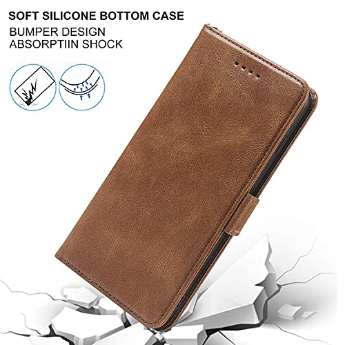 JWS-C Cover Custodia per iPhone 8/7/SE 2020 Custodia portafoglio in pelle PU di lusso {Blocco RFID} con supporto per carte Cordino protettivo antiurto Polsino Flip cover per iPhone 8/7/SE 2020-Marrone
