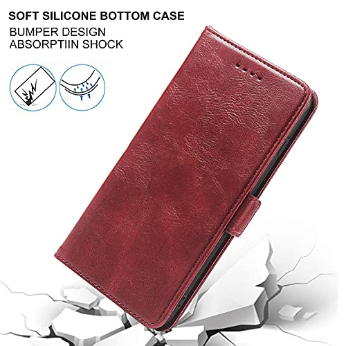 JWS-C Cover Custodia per iPhone 8/7/SE 2020 Custodia portafoglio in pelle PU di lusso {Blocco RFID} con supporto per carte Cordino protettivo antiurto Polsino Flip cover per iPhone 8/7/SE 2020-rosso