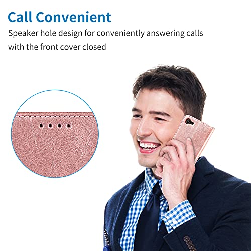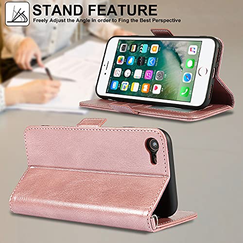 JWS-C Cover Custodia per iPhone 8/7/SE 2020 Custodia portafoglio in pelle PU di lusso {Blocco RFID} con supporto per carte Cordino protettivo antiurto Polsino Flip per iPhone 8/7/SE 2020-Oro rosa