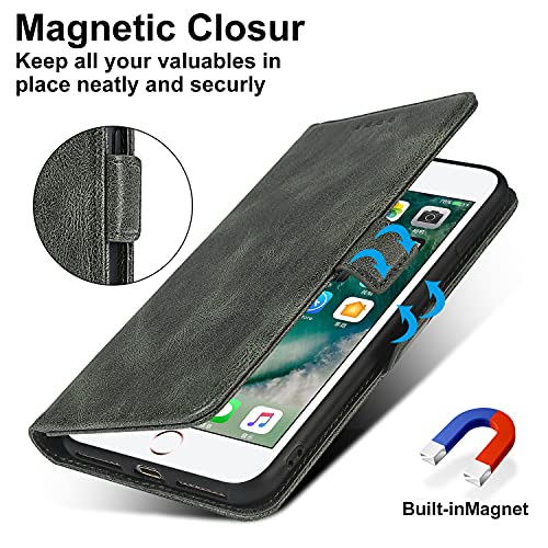 JWS-C Cover Custodia per iPhone 8/7/SE 2020 Custodia portafoglio in pelle PU di lusso {Blocco RFID} con supporto per carte Cordino protettivo antiurto Polsino Flip cover per iPhone 8/7/SE 2020-verde