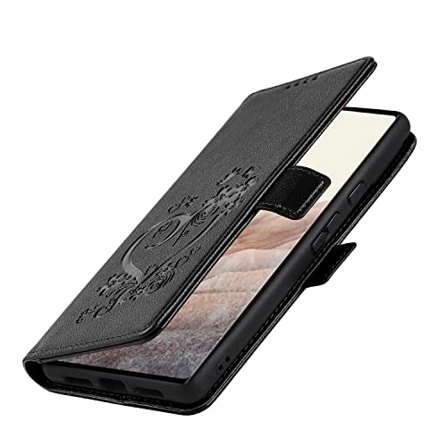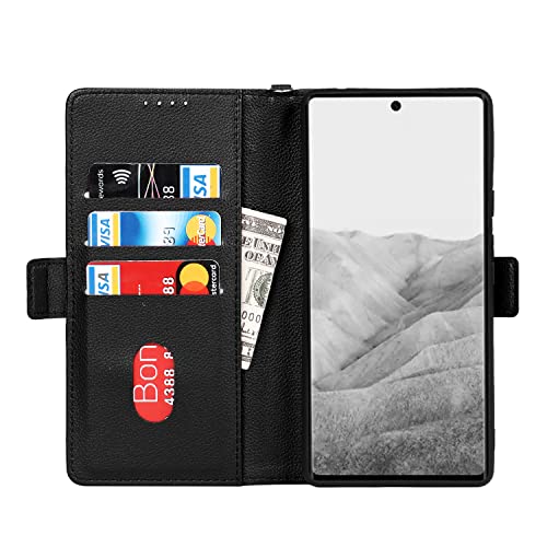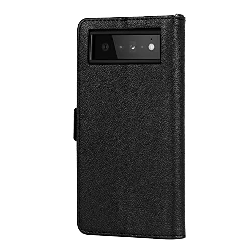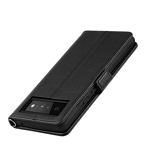 JWS-C Cover Custodia a portafoglio in pelle per Google Pixel 6 5G 6.4" - con portacarte + blocco RFID -[con cinturino da polso] - Custodia libro a flip per Pixel 6 5G - Nera