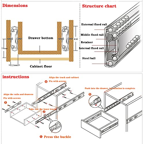 JXCAA Guide Scorrevoli, Guide per Cassetti, Cuscinetti per Guide Scorrevoli, Guide Cassetti, Guide Telescopiche per Carichi Pesanti, Guida A Tre Sezioni del Cassetto, può Sopportare 80 kg, 2 Pezzi