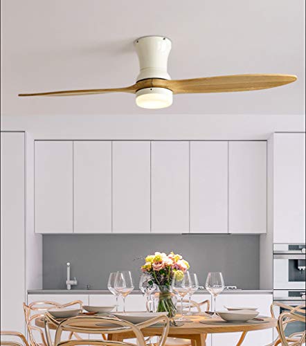 JXILY 60 Pollici Ventilatore A Soffitto con LED Telecomando, Ventilatori A Soffitto con Lampada di Legno Solido 2 Foglie retrò Casa Soggiorno Sala da Pranzo Inverter Silenzioso,Bianca