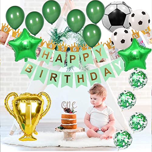 Decorazione di compleanno di calcio: palloncino da 32 pollici da 32 pollici (circa 80 cm), 1x tazza di palloncino oro (circa 65 x 60 cm), 1x palloncino da calcio (circa 45 cm), palloncino da stella da 2x18 pollici, buon compleanno da 1x16 pollici Banner, palloncino 12x in lattice e 1 pcs banda.