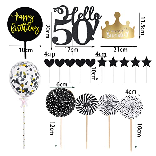 Jxuzh 18 pezzi decorazione per torta 50° compleanno donna uomo nero Happy Birthday decorazione torta 50° compleanno decorazione torta 50° compleanno decorazione torta glitter