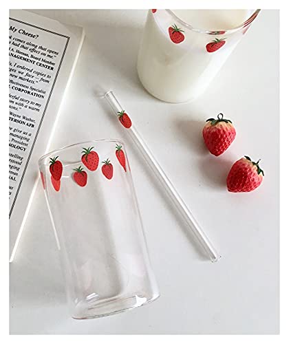 JYDZSW Tazza d'Acqua Alto Borosilicato Nana Carino Strawberry Water Water Latte Bere Bicchieri Tazza con Paglia (Color: A)