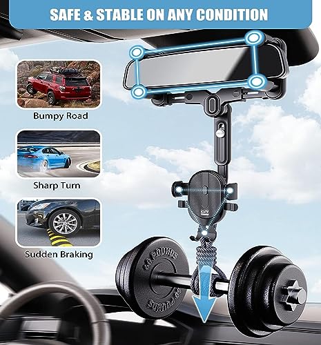 【Design antiurto con serratura】JYFKINN Supporto per specchietto retrovisore per auto adotta un design telescopico a quattro artigli. Il Porta Telefono Auto adotta il design telescopico a quattro artigli sui lati sinistro e destro, che afferra saldamente ogni angolo del telefono cellulare e il telefono cellulare può essere fissato saldamente in posizione, indipendentemente dall'autostrada o dalla strada accidentata montagna.