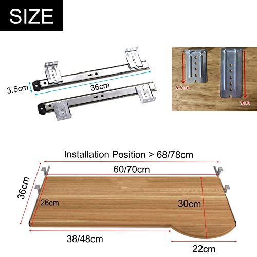 ● Design scorrevole: con binario di scorrimento da 360 mm. Le guide e le sfere di scorrimento in acciaio laminato a freddo durevoli fanno scorrere agevolmente il vassoio della tastiera. Quando non viene utilizzata, la tastiera può essere riposta ordinatamente sotto la scrivania per risparmiare spazio