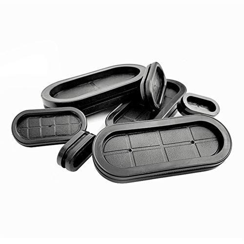 JYHSHENG Tappi passacavi Gomma, Fili 10pcs Groove Nero Gomma Sintetica Forma Ovale su Due Lati Guarnizioni passacavo di Gomma Protector Anelli (Size: CxD 20x50mm 5pcs)