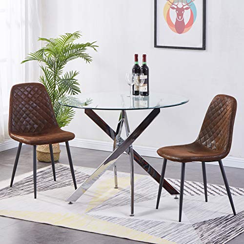 JYMTOM Set di 2 sedie da cucina in pelle scamosciata artificiale con gambe in metallo, schienale per ufficio, soggiorno, 2 pezzi, colore marrone