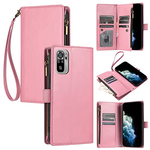 JZASES Cover per Xiaomi Redmi Note 10 4G / Redmi Note 10S, Custodia in Pelle PU con 9 Slot per Schede, Magnetica Antiurto Cover Compatibilità per Xiaomi Redmi Note 10 4G / Redmi Note 10S, Rosa