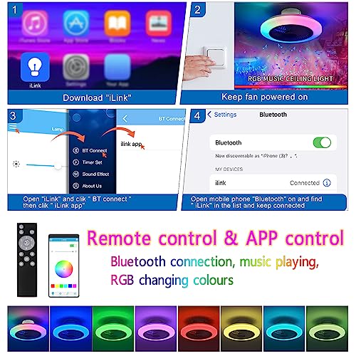 Controllo tramite APP: ventilatore con connessione Bluetooth, senza WIFI, temperatura colore regolabile - luminosità - luci in diversi colori e modalità.