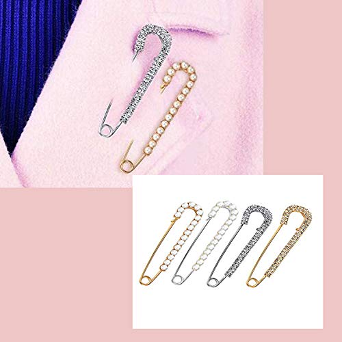 Jzhen 4 pezzi Spilla da Balia Gioiello,Spille di Perle Clip per Maglione Spilla di Sicurezza per Donne, 2 Stili
